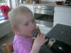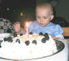 Emilies 1 års fødselsdag - lige inden hun klasker hånden i lagkagen!
