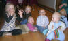 Fra venstre: Kusine Tina's Marie og Carl, fætters Anders Baby-Caroline og Christian, Fætter Jens' Andreas bag Emilie.