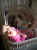 Emilie hygger sig i sengen med resterne af sin julekalender...